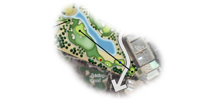 This par 3 plays in a South Westerly direction, with water very much in play down the right side. The green is a large target, but the elevation changes will demand accuracy to score well. The left is the safer bail out side, but is well protected with bunkering.
