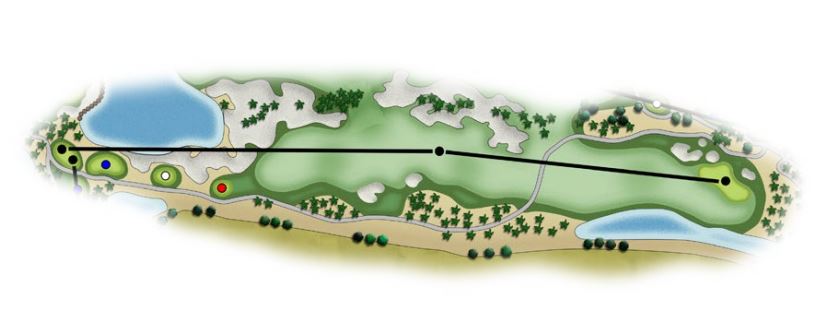 This is a strong par 4 playing in a northerly direction with a large waste bunker separating the landing area from the 6th hole. The best play will be to flirt with the high right side bunkers; from this elevated landing area the water right will be less of an influence on the 2nd shot. Left of the green is an undulating bail out area, but a chip from here will be testing with water and bunker behind the green from this angle. Water is separated from the green by a beach type bunker in numerous strategic areas.